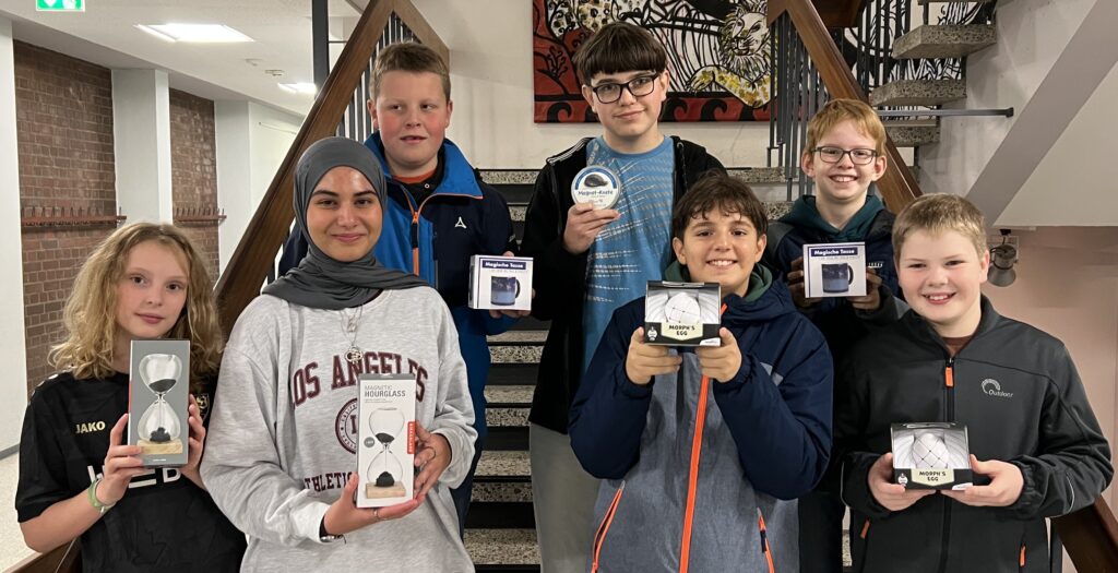 Knobelfreudige Schülerinnen und Schüler des Johann-Vanotti-Gymnasiums haben sehr erfolgreich beim Unterstufen-Mathematik-Wettbewerb „Problem des Monats“ mitgemacht. Über die Aktion „Bildung stärken“ konnten auch im Jahr 2025 tolle Hauptpreise angeschafft und an die fröhlichen Gewinnerinnen und Gewinner verteilt werden. Ein weiteres Dankeschön gilt dem schuleigenen Förderverein, der die Aktion ebenfalls seit Jahren finanziell unterstützt.